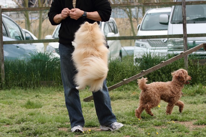 こんだけ上には跳べれるのに、低いハードルは全く跳ぼうとしません(たとえオヤツで誘導しても)