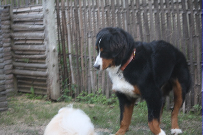 バーニーズ君、写真ではわかりづらいけど、実際見ると歩き方がまだパピーっぽさが残ってるからわかると思いますよ(^-^)