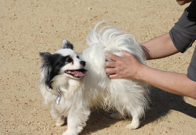 普段は他人に体を触らせないパピなんですけど、シドちゃんのママさんにこうして大人しくマッサージして貰っていました。