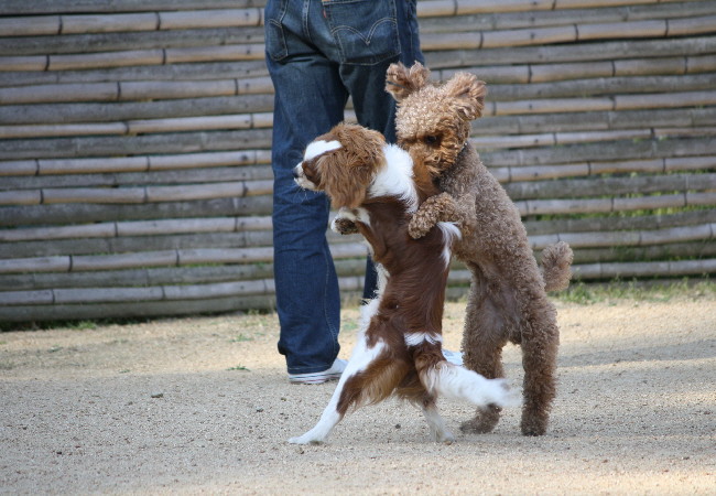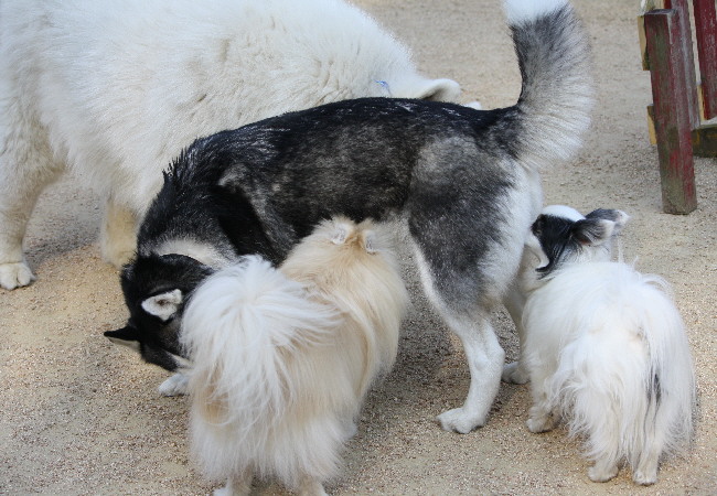 ジョンは遊びたくて仕方がないけど、パピは匂い嗅ぎばかりでしたよ(笑)