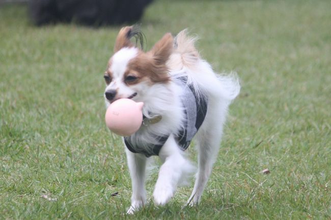 メロンちゃんとレイさま、ボール遊びを始めました。