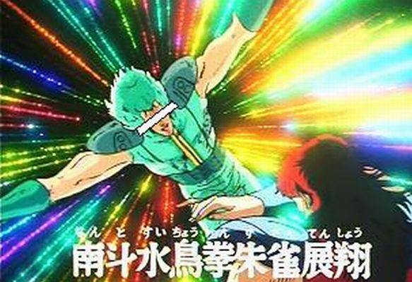 劇画タッチに変身したレイさま、変身しただけではなくボールを捕るだけの為に必殺技炸裂です。