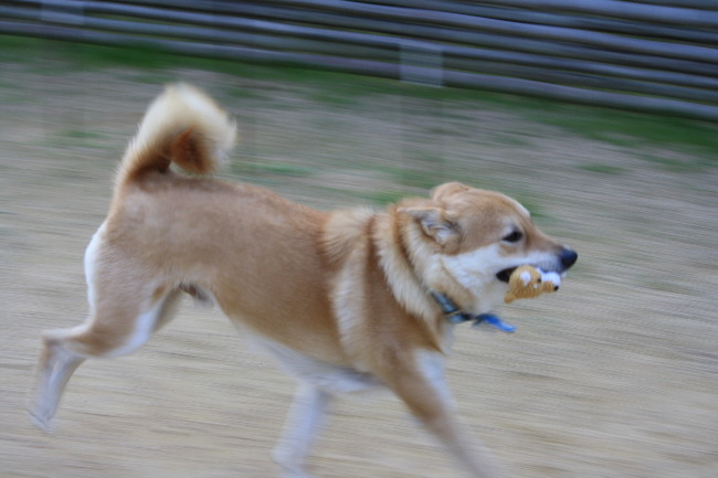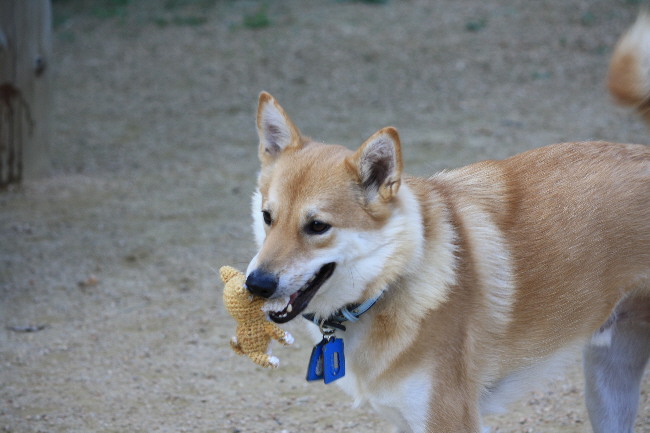 みんなお気に入りのおもちゃが出来る(他所の子の奴でも)と、咥えて逃げるんですよ。