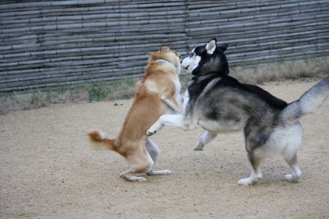 自分が同じ事をしてもすぐにお腹を見せて逃げないので、こうして走らせて貰えると有難いです(^-^)