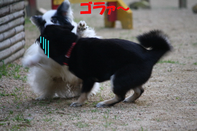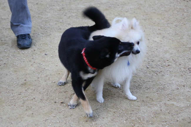と、おっさんパピの洗礼を受けた黒柴ちゃんでしたが、全然懲りずに何度もパピの所に来ては怒られていました(笑)