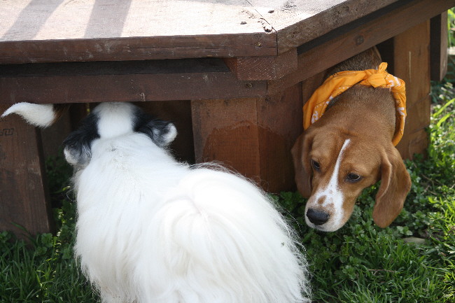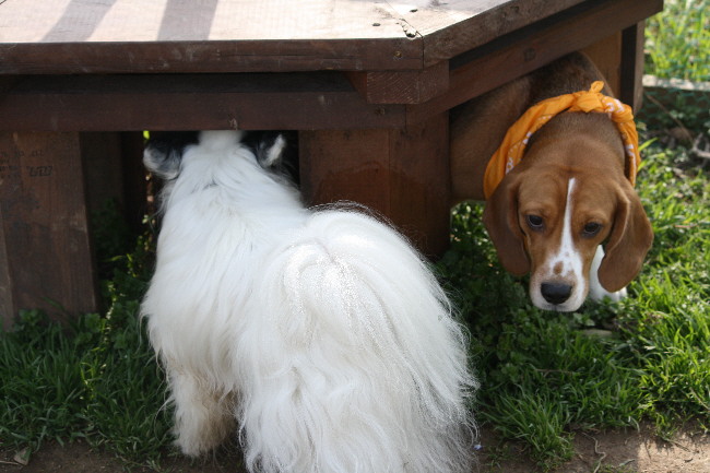 隠れながら器用にパピのお尻を嗅いでいました(笑)
