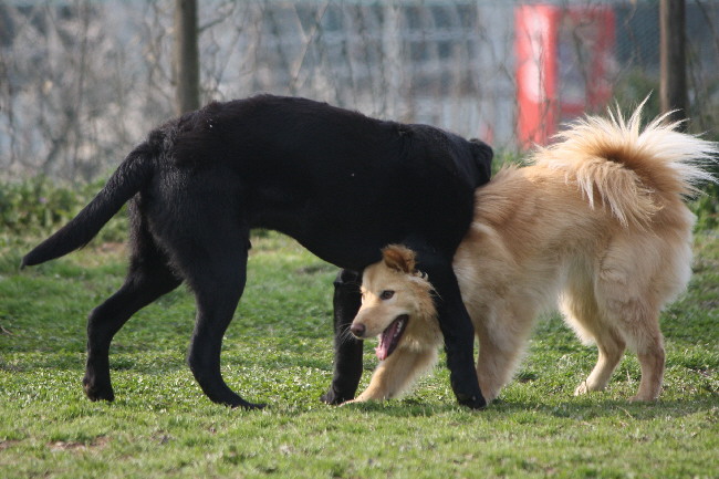 入って来たmixの子と黒ラブ君は年齢も近いとの事で意気投合したのか、帰るまでずっとこんな調子で遊んでました。