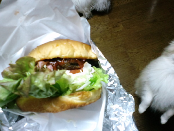 と心の中で言いながら、見せびらかす様にハンバーガーから食べました(爆)