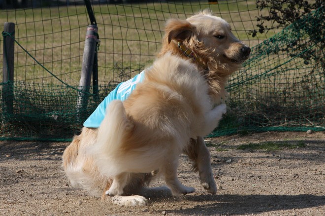 行動が(笑)パピ君に一喝されてゴールデン君のお顔が面白過ぎて萌死じゃなくて笑い死にしそう