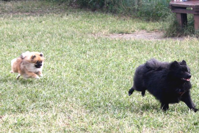 ジョンはあずきちゃんに追いかけられ
