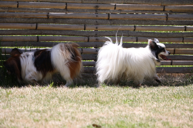 凄い!パピヨンが一杯!そんな中でも、パピ君のモフモフは目立ちますね。いつもジョン君と一緒だから、モフモフが移ったんですかね(笑)