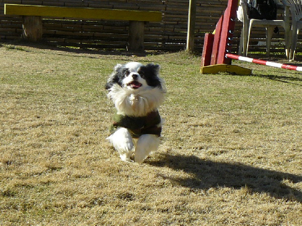 前にも書いた様にこのナナちゃんはまだパピーなんですけど、アジの素質充分ありで教えなくてもドッグウォークをやったりします。ジャンプも実に軽やかにこなします。