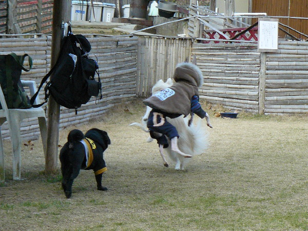ジョンが遊んでいる時に自分がパピをダッコしていたので、ヤキモチを妬いたジョンがパピを怒っているようでした。
