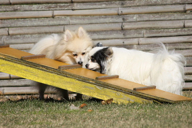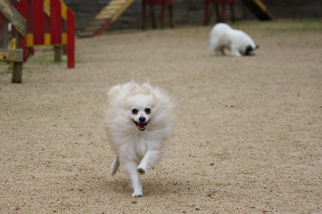 1時間ほど小ドッグランで遊んでいたんですけど、誰も来ないしジョンもパピも飽きて来た様なので、大ドッグランへ移りました。