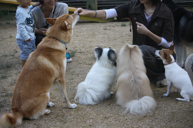 みんなお座りしたところで、無事オヤツを貰えました。