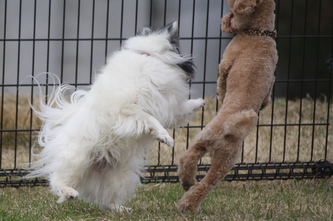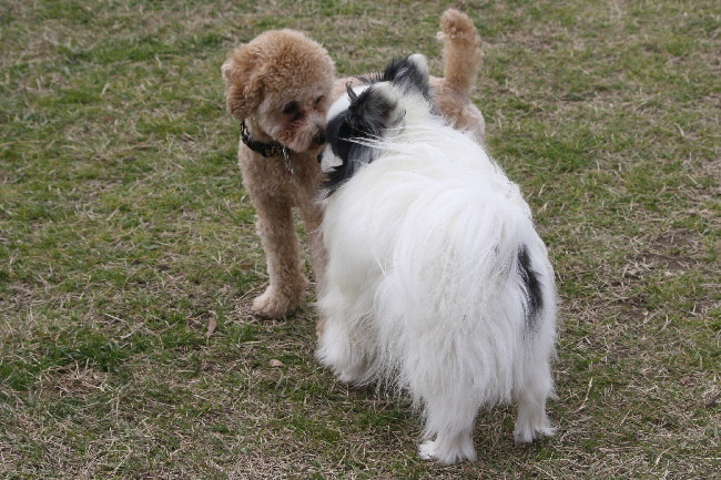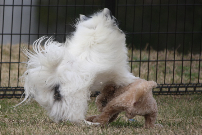 と、ブチギレたパピでしたが、身軽なトイプー君にさっと避けられました(爆)