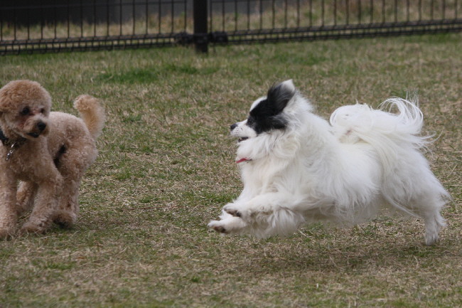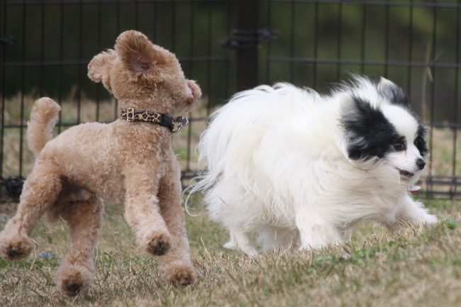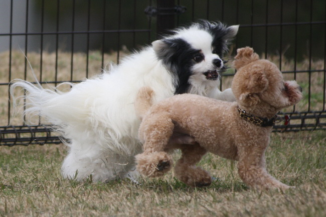 あまりのパピの気迫にトイプー君は反撃する事無く逃げ出してしまいました。