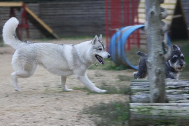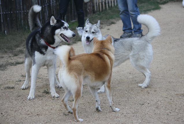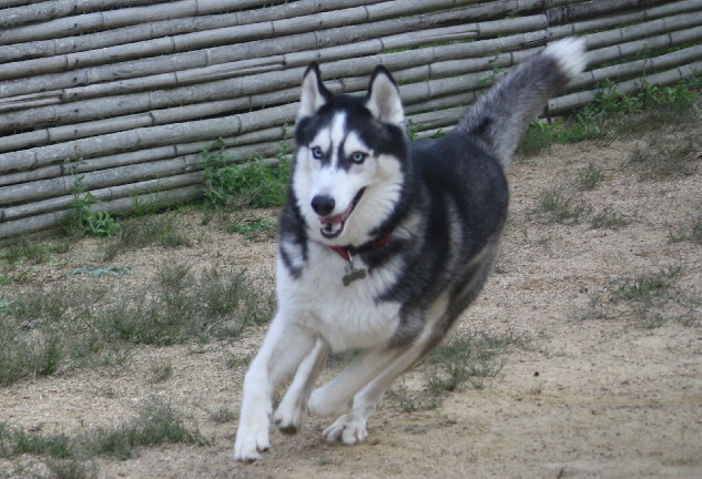 リードを外されたハスキーちゃんは楽しそうに遊んでいました。
