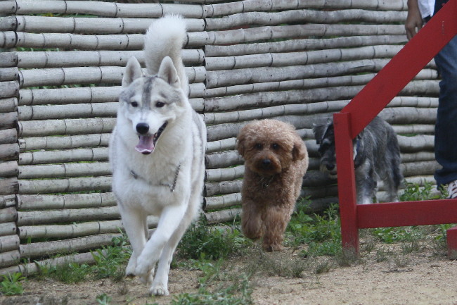ここには初めて来られたようで、賑わっていたランに慣らす為かゆっくりとラン内を一周リード付きで歩いていました。