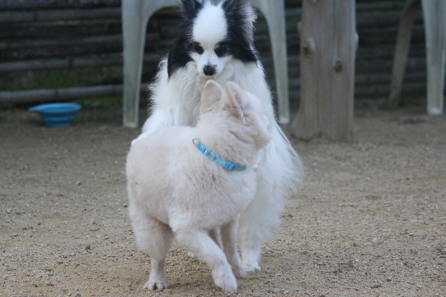 タム君はパピに興味を持ってくれた様で、パピの後を付いてよく歩いていました。