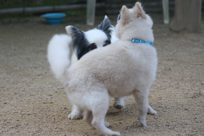 チワワ君はもう諦めた様でパピのなすがままになってました。