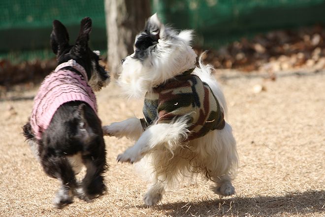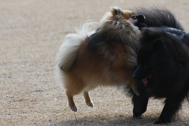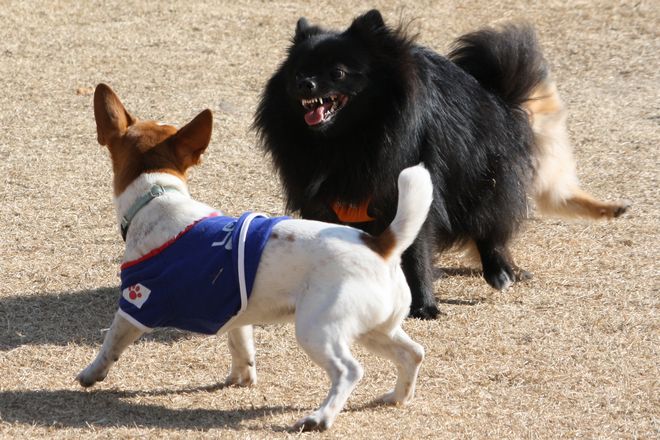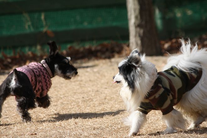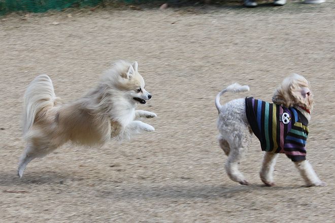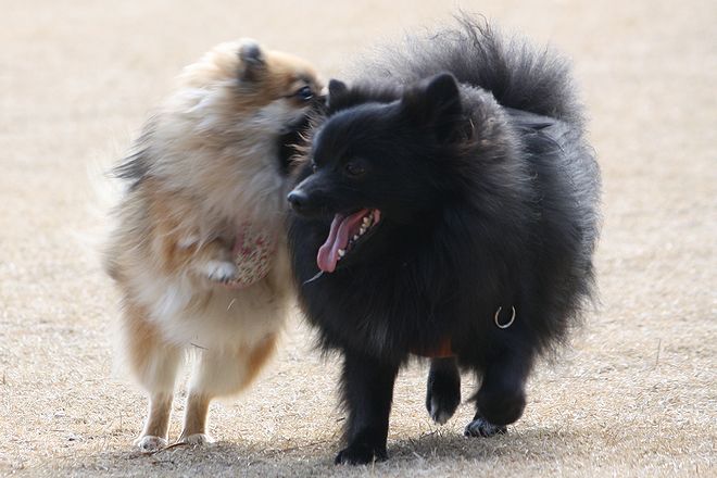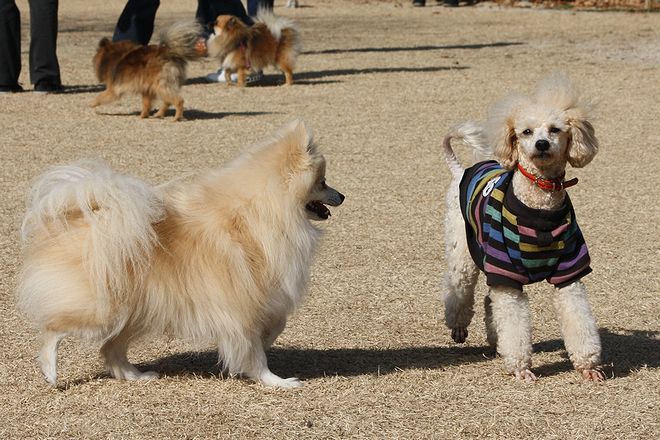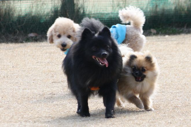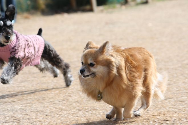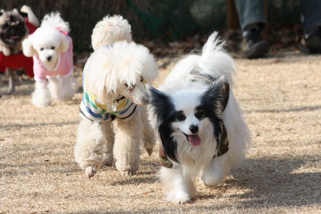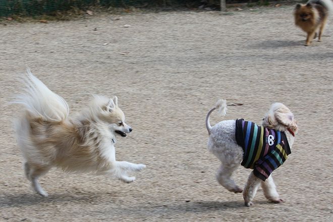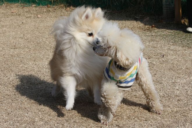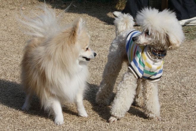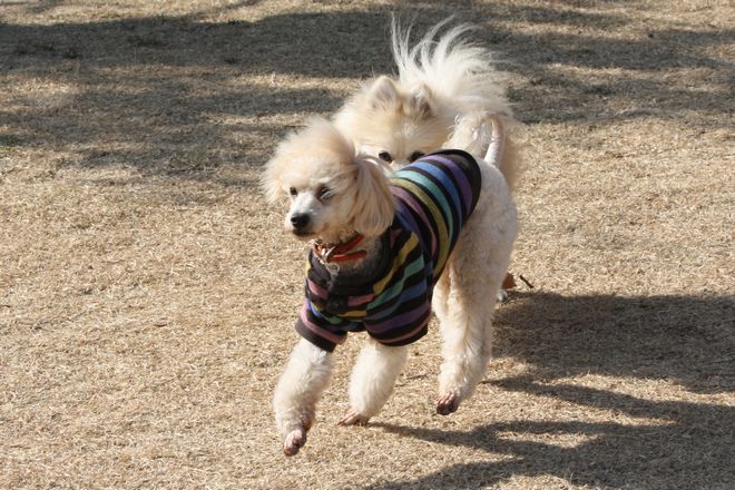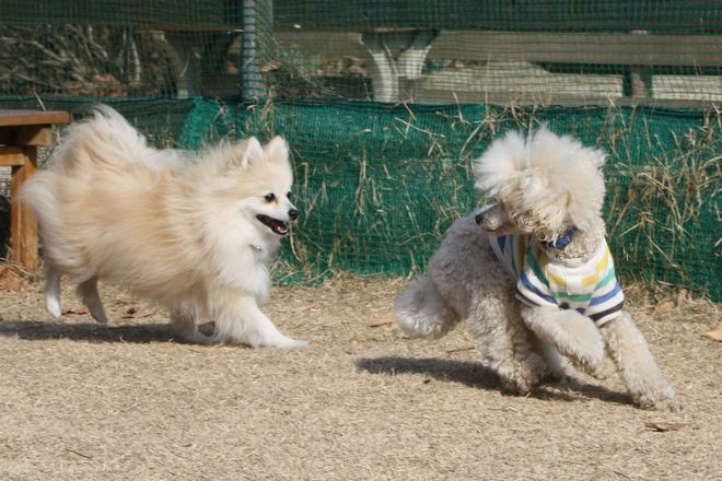次は兄弟犬らしきトイプー君と追いかけっこ