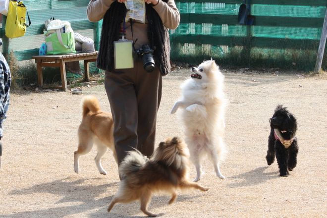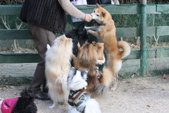 深山のドッグラン、みんなホンマに楽しそうですね。