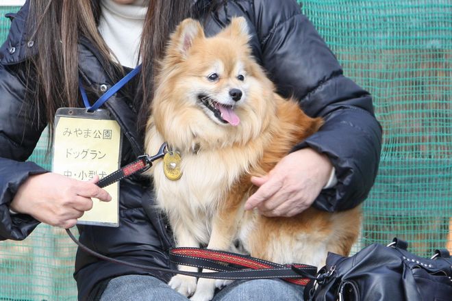 ランの外にポメを抱いた方が来られました。