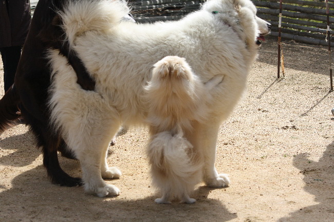 ジョンもクッキー君の事が大好きで、いつもこうしてくっ付いて行きます(^-^)