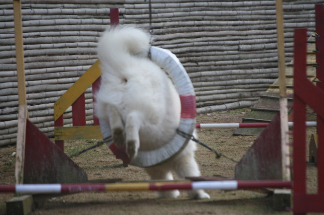 クッキー君もハードルは勿論の事、自分の胴回りほどしかないタイヤくぐりもご覧の通りです。