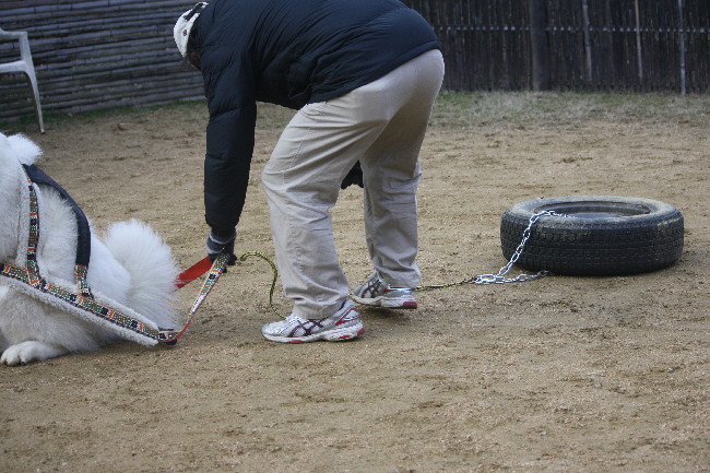 この日も雪山登山に備えてのタイヤ曳きの練習を始める様です。