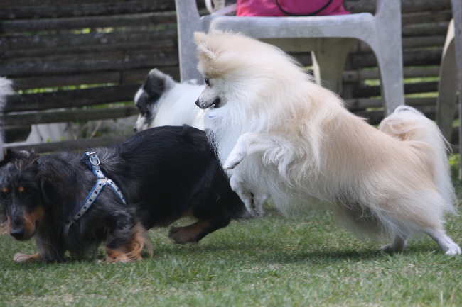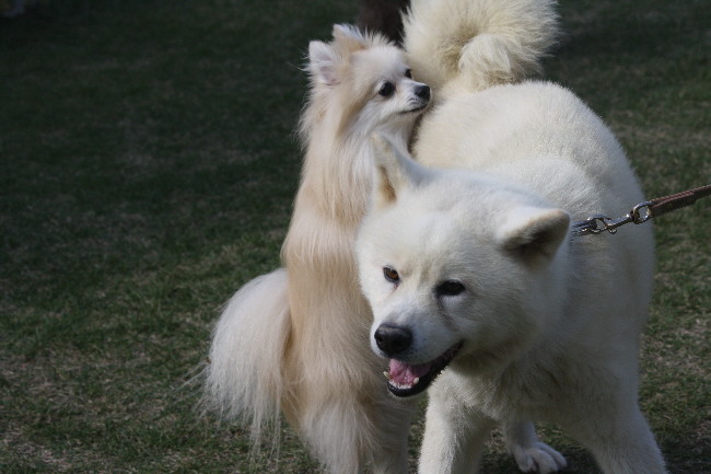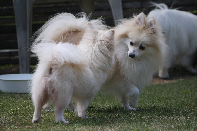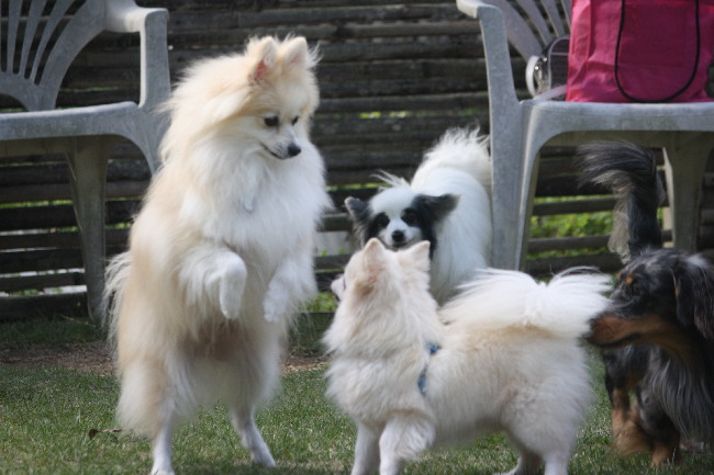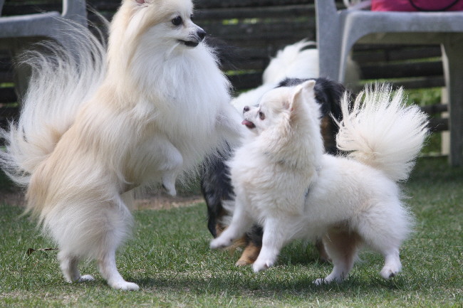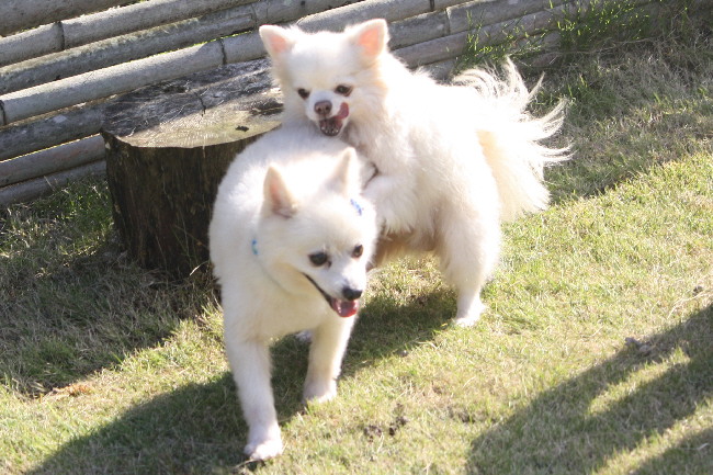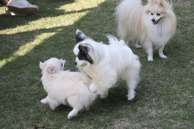 愛犬広場の常連ポメは、大ポン太君、ポン君、うちのジョンの3頭だけだったんですけど、夏頃からタム君も来られる様になって4頭になりました(^-^)