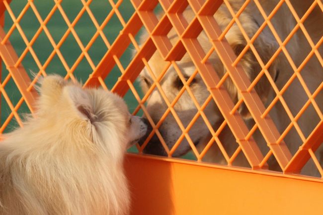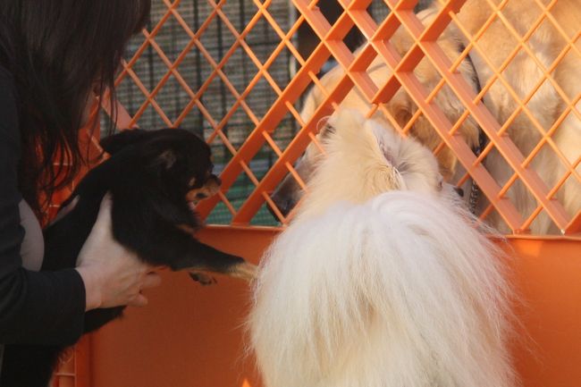 しばらく柵越しにお話させて頂いているとゴールデンがやってきたので、ロンチー君もこちらへやって来ました。