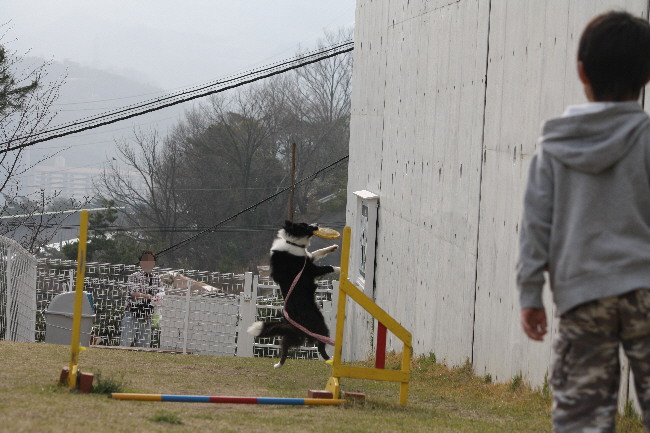 このボーダーコリーちゃん、とてもディスクが好きでお兄ちゃんに投げてもらって遊んでいました。