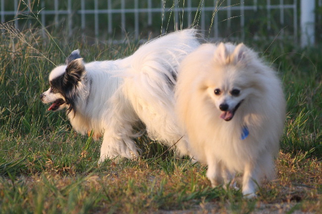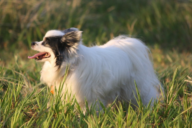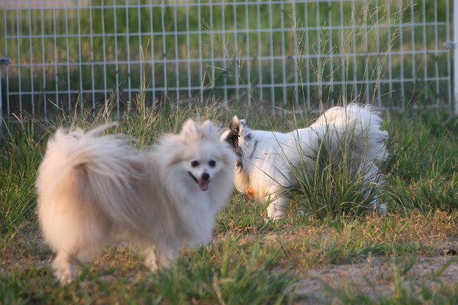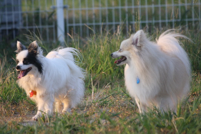 夕陽がいい感じにパピの白いコートを照らしてくれてます。
