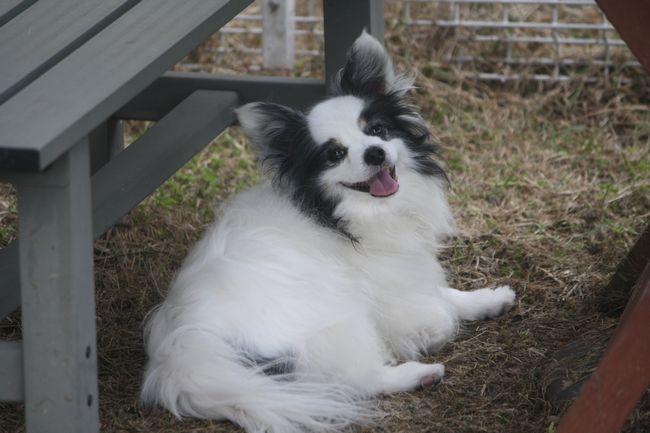 椅子の上からここでのお気に入りの場所へ移ったパピ。