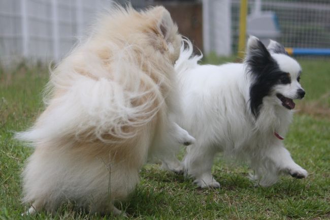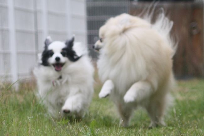 うちはパピが走るとジョンが喜んで、ちょっかい掛けに行く感じなんで決して仲良くって事ではないんですよ(笑)