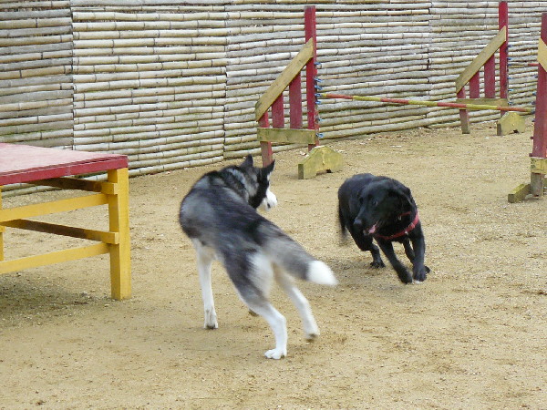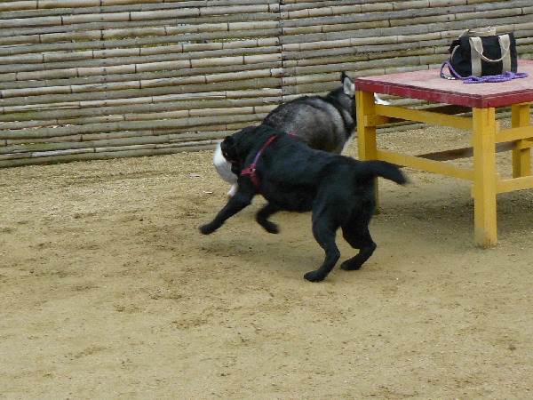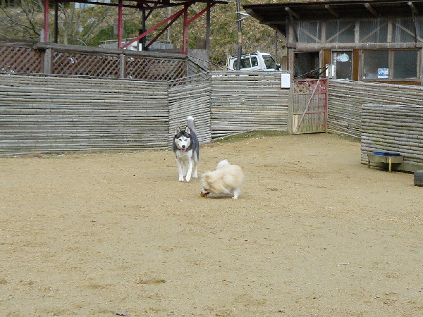 大型犬同士で追いかけっこしたりボール遊びをしていました。