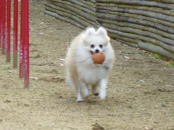 大型犬の子達はみんな固まって遊んでいたので、少し離れてジョンとボール遊びしました。