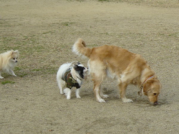 よくこんな大きい子(犬種)に向っていくものだと変な所で感心してしまいました(笑)