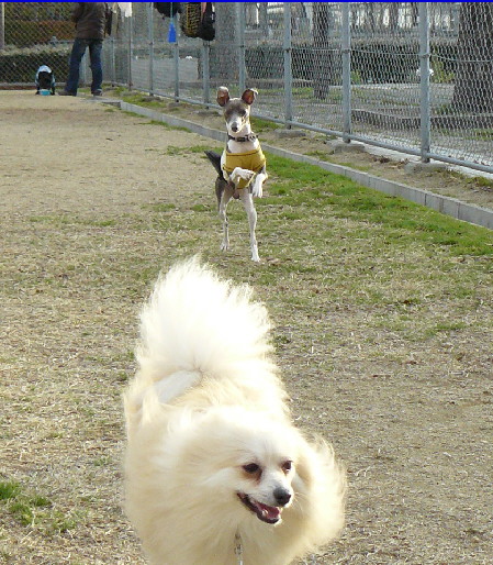 ジョンもパピもあっちに行ったりこっちに来たりと楽しそうに走り回っていました(^-^)