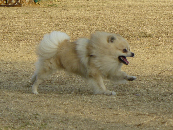 ジョンがフェンス際に張り付いていたので目を向けるとポメでした♪