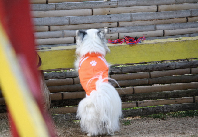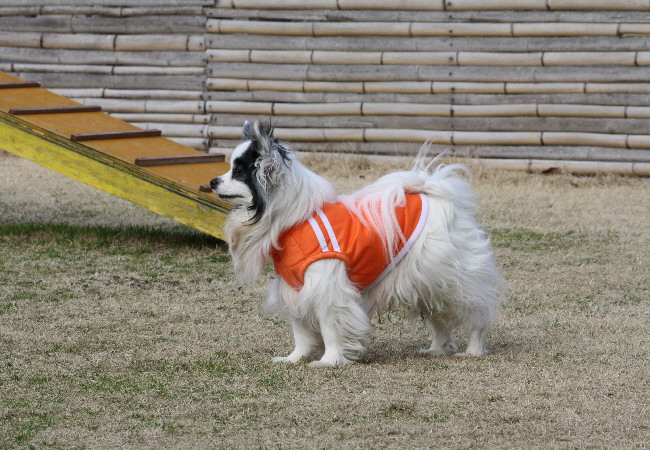 ジョンもパピも走り回ってはいたんですけど、やはりみんながいる大ドッグランの方が気になるのか、ちょくちょくとこうして向こうの様子を伺っていました(笑)