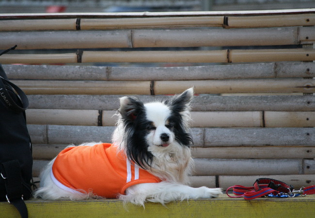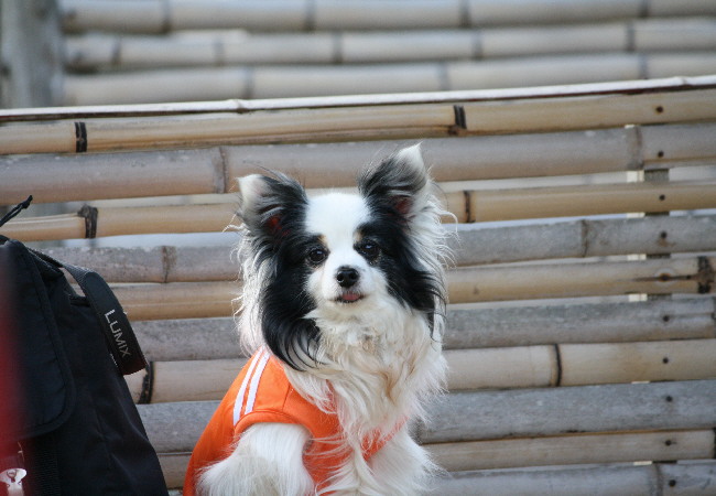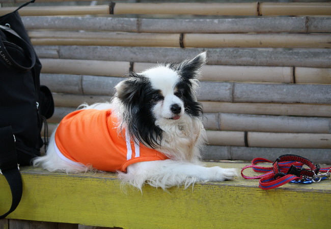 ベンチ座りの一連のパピの写真はニタニタしてませんよ。