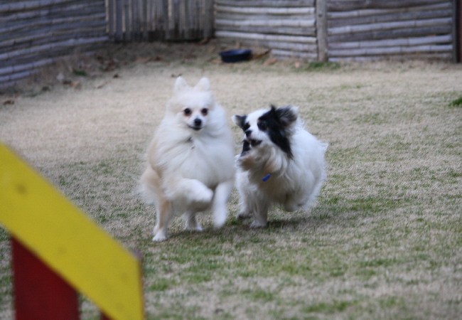 ジョン君とパピちゃんのバトル写真、面白い~((o(>▽<)o))