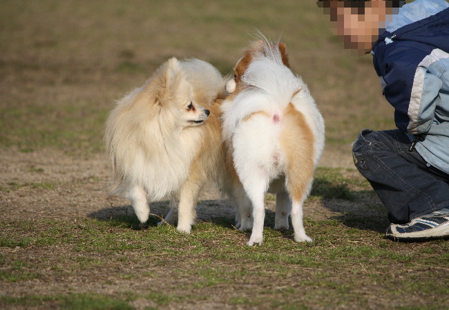 たまたまなのかわからないけど、ポン太君もそうだしこないだ河川敷であったポメもこの子もみんなお尻の毛を短くされています。