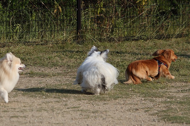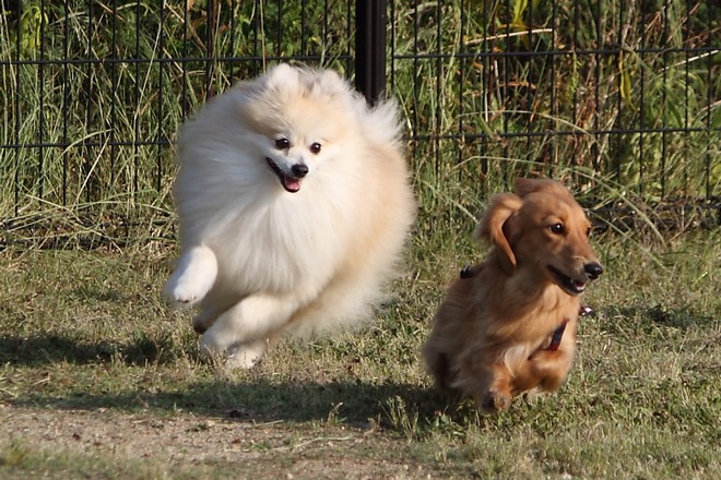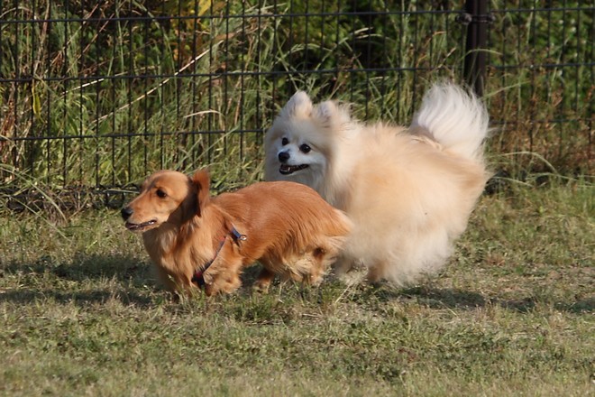 ジョンが追いかけてる時はまだ『追いかけっこ』を楽しんでるって感じだったけど、パピが追いかけると『マジ逃げ』感がするダックス君(ちゃん?)