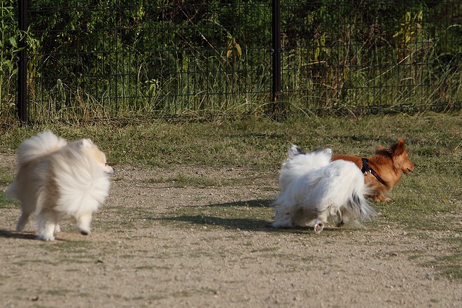 ジョンはいつもの様子だけど、この日はパピもランに入ってしばらくはよく走っていました。