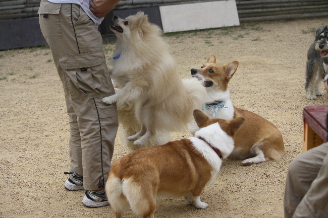 さすがモーちゃんちの子だけあって(モーちゃんはアジリティ-をする子なのです)、まだ3ヶ月だと言うのにお座りや側歩もかなり出来ていました。