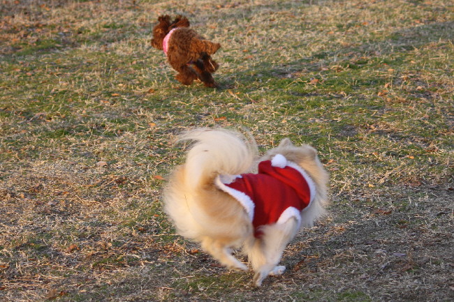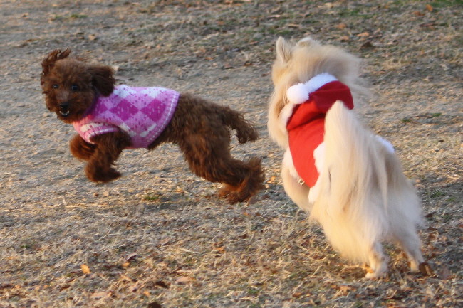 陽に照らされてキラキラ走っているジョン君・パピ君素敵です☆